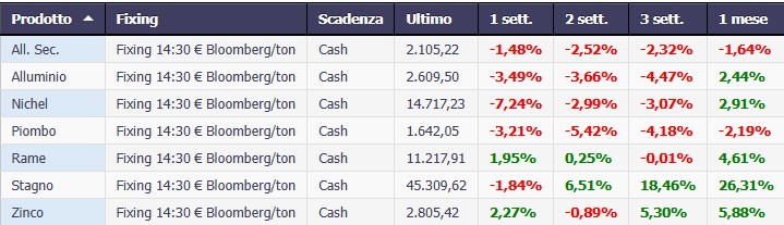 In territorio positivo si colloca anche lo zinco, che chiude il mese con un progresso di circa +7,6% in dollari e +5,9% in euro. Un recupero che, pur non cancellando le debolezze strutturali del mercato europeo, suggerisce un parziale ribilanciamento dopo le forti pressioni ribassiste dei mesi precedenti.