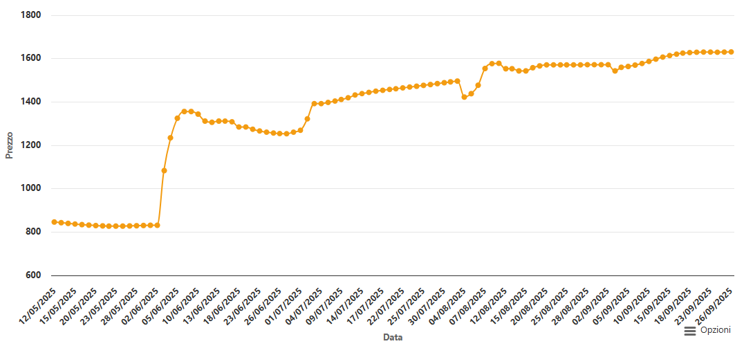 Il grafico mostra con chiarezza come, dopo il crollo di primavera che aveva spinto le quotazioni sotto quota 2.300 $/t, il metallo abbia intrapreso un lento ma costante percorso di risalita. La fase di consolidamento tra luglio e settembre, oscillante attorno ai 2.600-2.700 $/t, segnala che il mercato sta cercando un nuovo equilibrio, sostenuto sia dal recupero della domanda industriale sia dal rafforzamento dei premi fisici in Europa.