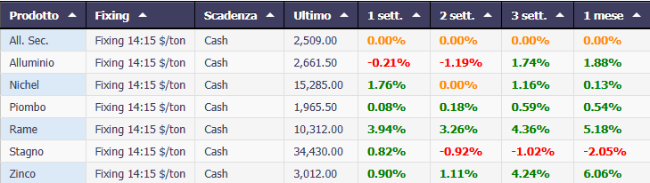 Il mese appena concluso ha visto i metalli non ferrosi muoversi in territorio prevalentemente positivo, con qualche eccezione che riflette le incertezze di un mercato ancora fragile. Sul fronte dei prezzi in dollari, a brillare è stato soprattutto lo zinco, che ha messo a segno un balzo del +6,06% nell’arco di un mese, seguito dal rame con un robusto +5,18%.